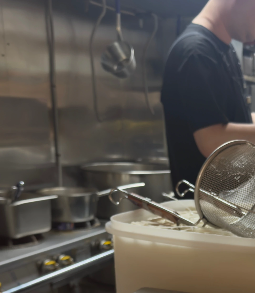 미분당의 주방을 유심히 살펴본 이라면 재밌는 장면을 하나 목격할 수 있다. 대형 육수통 위로 일정한 간격을 두고 물방울이 툭툭 떨어지는 모습이다. 이는 단순한 실수가 아니라 육수의 염도와 온도를 실시간으로 유지하기 위한 치밀한 계산이 담긴 장치다. 시간당 어느 정도의 수분이 증발하는지, 계속 육수의 간을 보면서 물줄기의 양을 조절하시는데 그 농도를 맞추기 위해 얼마만큼의 물이 보충되어야 하는지 이미 완벽하게 수치화되어 있다는 뜻이다. 주방에 상시 물이 흐름에도 불구하고 곰팡이 하나 없이 청결함을 유지하는 매장 상태는, 이러한 정교한 시스템이 위생이라는 기본 위에서 작동하고 있음을 증명한다.
