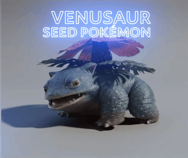 처음 만난 포켓몬은 '파이리' 였는데요. 아직 꼬리에 '불' 시뮬레이션이 안되어 있어서 꼬리만 달랑 들고 나타났습니다. 피부 표면은 실사화를 위해 도마뱀 질감이 입혀졌었는데요. 나름 현실고증을 열심히 한 애니메이션의 캐릭터 그대로였습니다. 개인적인 감상으로는 이질감 안들고 정말 잘 만들어졌다 였습니다.