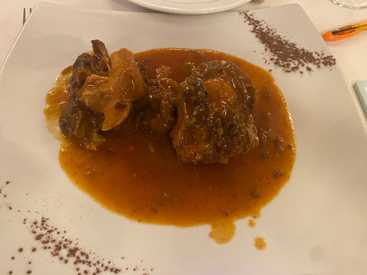아주 많은 사람이 추천했을 그 메뉴. 그간 쌓아온 느끼함을 내려줘서 한국인이라면 좋아할 수밖에 없다는 그 메뉴. 소꼬리찜이다. 토마토 베이스의 소스와 아주 부드러워 녹아내릴 것만 같은 살코기는 크게 호불호를 타지 않을 맛이다. 우리의 갈비찜과 비교하며 한국 음식에 대한 향수를 달래준다고 평한 사람들이 많던데 그건 동의하기 어렵다. 고기의 부드러움이야 비견할 만 하지만, 이건 그냥 전형적인 이탈리아의 스튜맛이다. 조금 더 매웠으면 좋았을 것 같아 아쉬운 마음도 들었지만, 으슬으슬한 몸을 따끈하게 데우고 싶다면 이것만 한 게 없다.