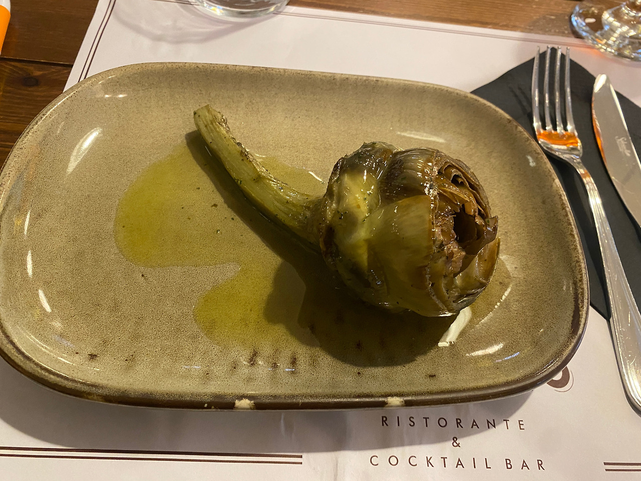 예전에 어느 레스토랑에서 살짝 맛본 적이 있던 아티초크. 로마에서는 튀기거나 구워서 애피타이저로 즐겨 먹는다고 해서 꼭 제대로 즐겨보고 싶었던 메뉴였는데, 이번에는 올리브유를 잔뜩 뿌려 구운 버전을 맛보게 되었다. 부드러운 안쪽 부분만 먹는 거라던데, 나는 잘 모르고 겉면도 잘게 잘라먹다가 날카롭게 씹히는 부분에 놀라기도 했다.(예전에도 이렇게 먹었던 기억이 ㅋㅋ 실수는 반복된다.) 로마를 뜨기 전에 튀긴 것도 한번 먹어봐야지 했는데, 의외로 기회가 없었다. 구운 것(솔직히 그냥 올리브유에 버무린 것 같은)은 딱히 추천하지는 않는다.