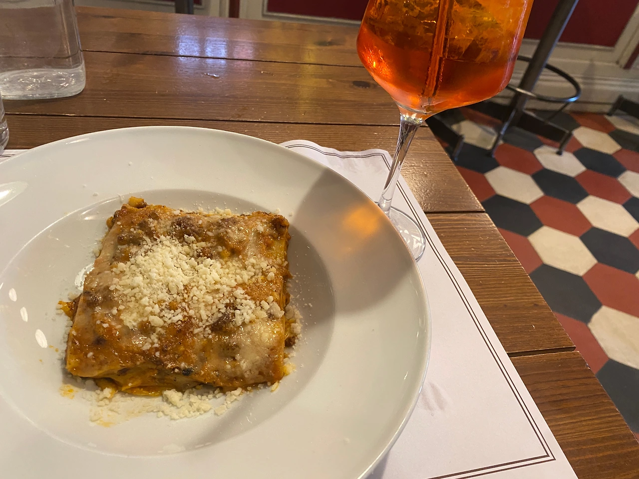 개인적으로 각별히 사랑하는 메뉴 '라자냐'. 처음 맛본 라자냐가 너무 환상적인 맛이라 메뉴판에 있다면 늘 주문을 고민하게 되는 메뉴이다. 얇고 납작한 파스타 사이에 층층이 라구 소스와 베사멜 소스가 있고, 그 위에는 고소하고 진한 풍미의 치즈가 녹아내린다. 분명 다 아는 맛인데, 겹겹이 쌓여 있는 걸 한 입 떠먹으면 맛있다는 말만 연발하게 된다. 이탈리아에서도 각기 다른 식당에서 3-4번은 주문한 메뉴인데, 어째 사진은 아래 두 곳밖에 없는지 알 수가 없다. 가본 레스토랑 모두 아주 평범하고 평균적인 맛이었다.(주로 홈메이드라고 강조했으나 미리 만들어 두고 데워 주는 거라 구별이 잘 안 되기는 했다는...) 하지만 뭐, 라자냐는 사랑이니까-