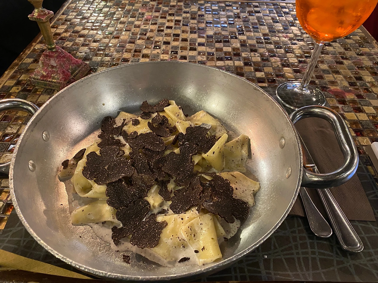"Pietro al Pantheon"은 두 번이나 방문한 곳이고 세 번 가지 못했음이 아쉬운 곳이라 추천하고 싶다. 홈메이드 파스타를 파는 레스토랑답게 소박하고 따뜻한 공간에 다정한 직원이 있는 곳이다. 사진에서 보는 대로 묵직한 트러플 크림소스에 슬라이스 된 트러플이 올라가 있다.
