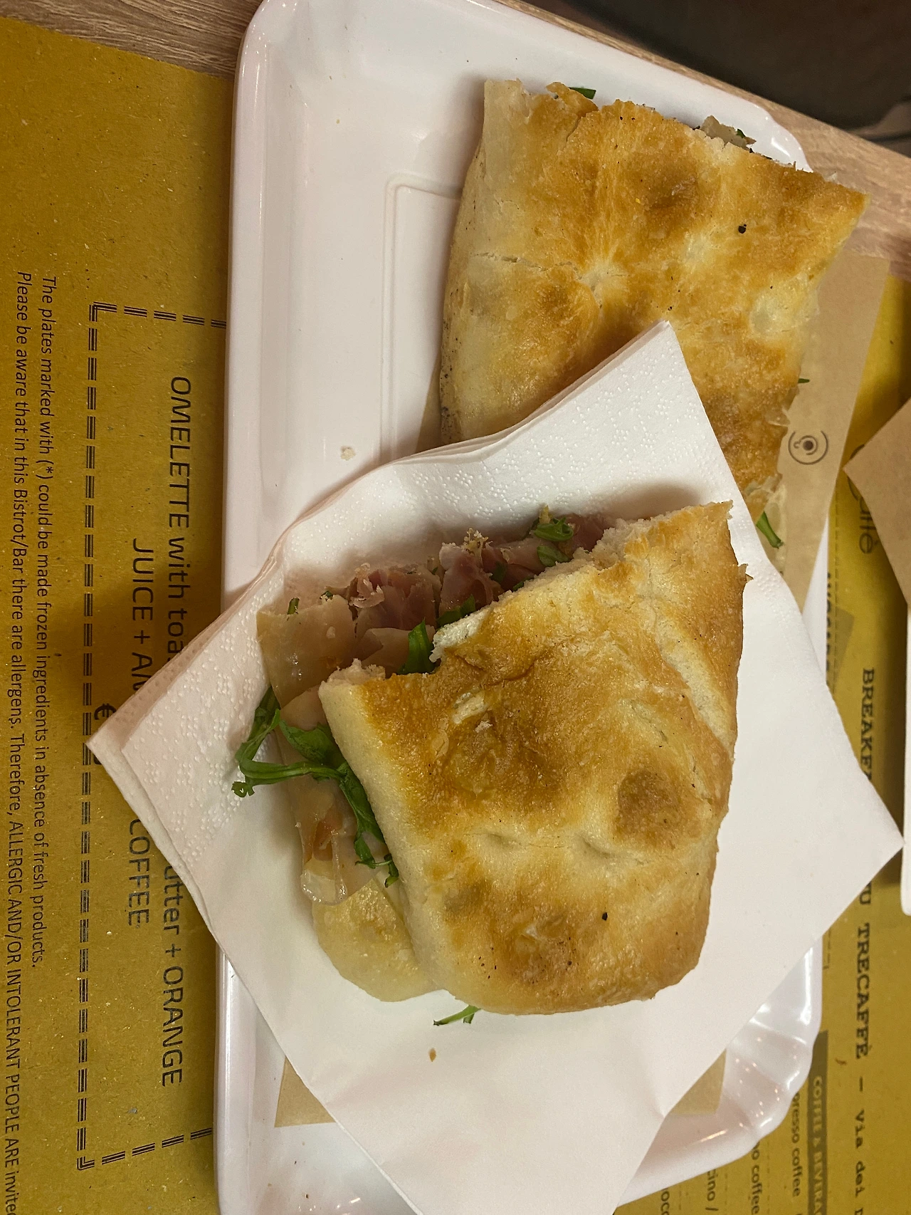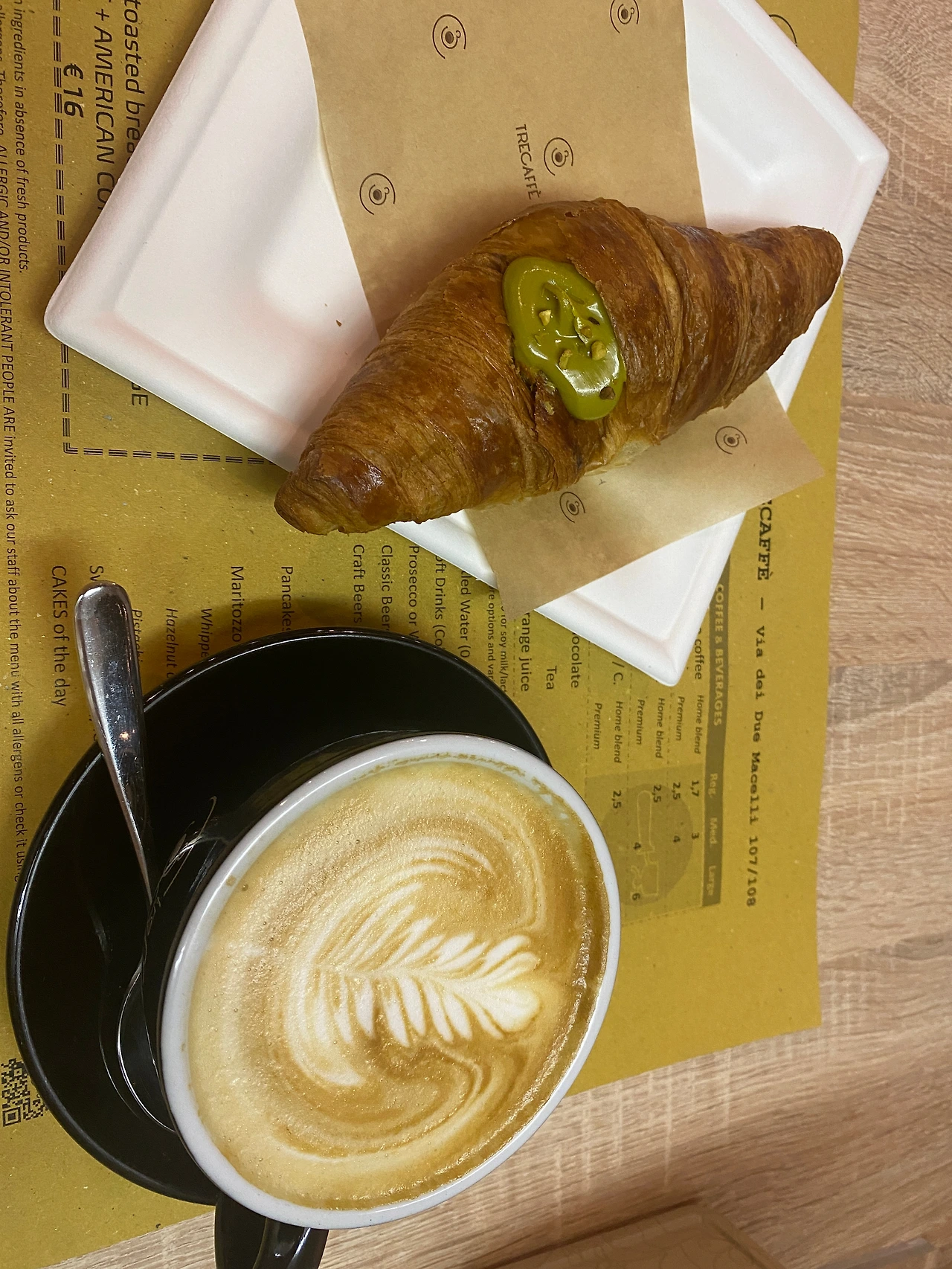 - 보르게세 미술관에 가던 날 이른 아침 식사를 해결했던 곳이다. 이탈리아에서 마셨던 카푸치노 중에 가장 마음에 들었다. 난 우유 함량이 적어 커피의 맛이 진하게 느껴지는 라떼를 좋아하는데, 이곳의 카푸치노가 그래서 만족도가 높았다. 참고로 이탈리아에서 라떼를 주문하면 우유를 꽤 많이 넣어 준다. 나와 비슷한 취향이시라면 차라리 카푸치노를 드시길 추천한다. 이곳의 인기 메뉴인 피스타치오 크루아상과 정말 잘 어울리니 꼭 드셔보시길. 저렇게 먹고도 뭔가 출출하게 느껴져서 파니니를 하나 주문했는데, 역대급 짠맛에 1/3도 못 먹고, 카푸치노만 한 잔 더 시켜 마시다 나왔다. 인기가 많은 가게라 그런지 정말 많은 사람들로 붐벼 마음 편히 미적대기는 좀 어려웠다.