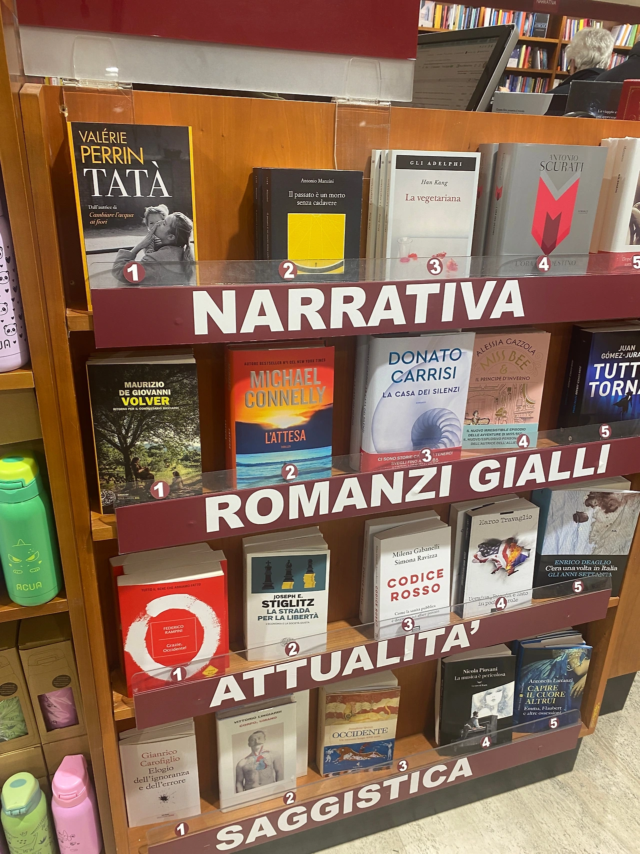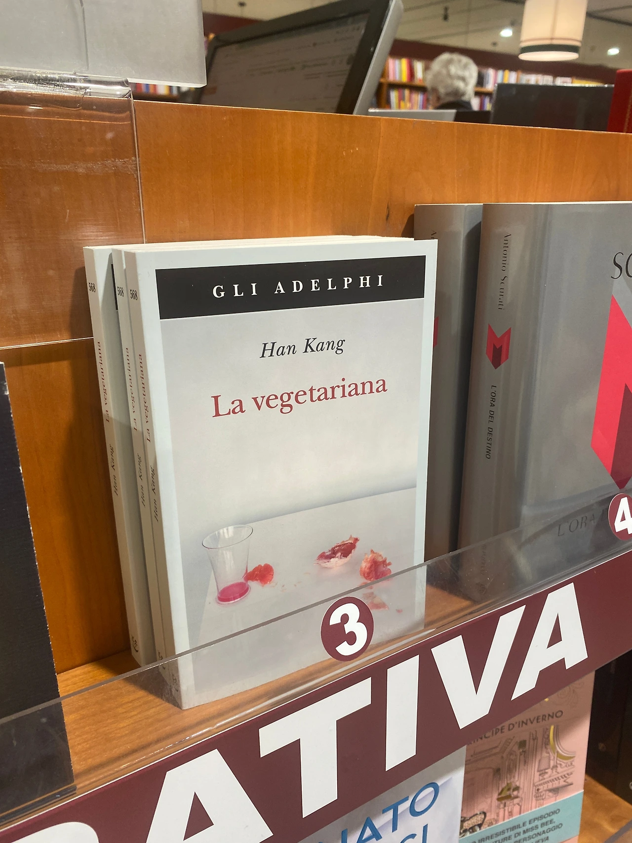 꽤 큰 규모의 서점을 둘러보다 여행을 떠나기 전 목표한 일을 하나 이룰 수 있었다. 바로 한강 작가의 책 발견하기. 2024년 노벨문학상 수상이라는 쾌거를 이뤄낸 그녀의 작품은 나 역시 오랜 시간 사랑해 왔던 책들이다. 연말부터 이 시대를 살고 있음이 화가 날 정도로 속이 뒤집어지는 소식들만 들려왔지만, 한강 작가와 동시대에 살고 있다는 것은 크나큰 축복임을 부정할 수 없다. 소설 분야의 베스트셀러만 모아 둔 서가에서 그녀의 책을 발견했다. 이탈리아 버전으로 하나 구입할까 잠시 망설였지만, 절대 다시 들춰보지 않을 기념품이 될 것 같아 그냥 사진으로만 남겨 두기로 했다. 귀국하면 집에 있는 책으로 다시 한번 읽어봐야지.