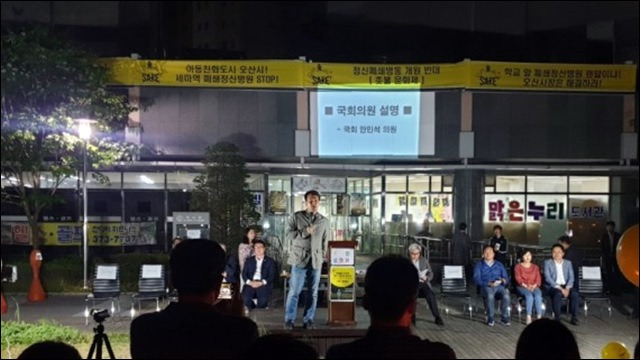 하지만 4월 말, 오산시 보건소를 통해 사실상의 정신건강의학과 전문 의원이라는 것을 알게 된 오산시 주민들이 병원 허가취소를 요구하기 시작했다. 지역 주민들의 불만 수위가 높아지자, 오산시 보건소는 5월 1일 보건복지부에 해당 병원 방문을 요청했다. 그리고 이 사건이 자신의 내년 총선 표심에 도움이 될 것이라고 생각했는지, 오산시 국회의원인 안민석이 이 문제를 해결하겠다며 팔을 걷어붙인다. 그는 5월 15일 박능후 보건복지부 장관을 직접 만나 '상식과 정의 실현 촉구'와 함께 '평안한 사랑병원' 허가취소 및 폐쇄를 직접적으로 요구하기에 이른다. 지역 주민들이 반대한다는 이유를 들어 공권력을 행사하여 압박을 가한 것이다.