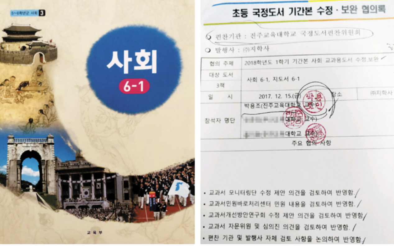 1. 문 정부 집권 이후인 2017년 9월, 교육부가 국정 사회 교과서의 내용들을 수정하기 위해 연구 및 집필 책임자인 진주교대 박용조 교수와 접촉했다.