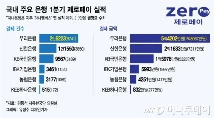 제로페이의 특성상, 은행 계좌 간 거래로 결제가 완료되는데 여기에 드는 수수료를 거의 제로로 낮췄기 때문에 이 서비스를 통한 실익은 사실상 없는 수준이다. 여기에 민간 법인화에 따른 비용까지 내라고 하니, 은행 입장에서는 이러지도 저러지도 못하는 상황일 것이다. 더군다나 시중은행 중 다수는 본인들의 카드사를 보유하고 있지 않은가? 제로페이 결제건수 1,2위 은행인 우리은행과 신한은행은 정부가 예쁘게 봐줘서 좋으면서도, 한편으로는 자기 가족의 수익 악화에 속이 타들어 갈 것이다.