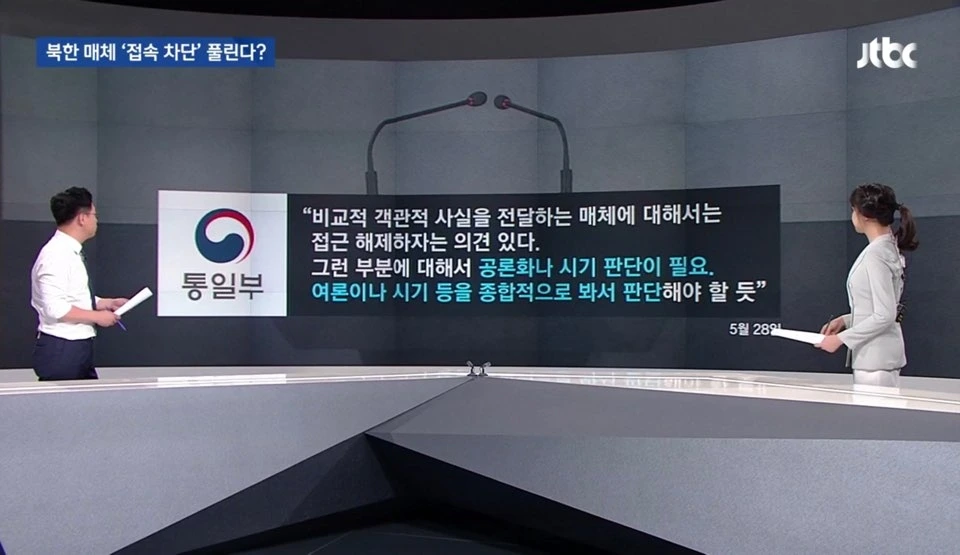 "비교적 객관적 사실을 전달하는 북한 매체에 대해 접근 제한을 해지하는 게 바람직하다는 의견이 모이고 있다"