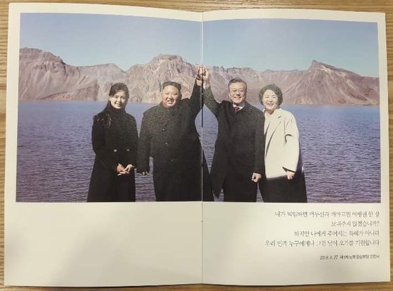청와대는 이 날 오찬 행사 참석자들에게 문재인 정부의 주요 국정 내용을 홍보하는 소책자를 나눠주었는데, 그 안에 실린 사진들 중 두 장이 문재인 대통령과 김정은이 함께 나온 사진이었기 때문이었다. 시트콤이 아니다. 몰래카메라도 아니고, 정치풍자 개그쇼는 더더욱 아니다. 무심코 책자를 열어본 전사자 유족들은 분노했고 식사를 제대로 하지도 못했다고 전해지며, 연평해전 전사자 한상국 상사의 아내는 끝내 화장실에서 구토를 하였다고 한다. 가족을 잃은 상처와 아픔을 위로받고자 했던 유족들에게 대통령과 청와대는 상상할 수조차 없는 일을 저지르고 만 것이다. 청와대는 '해당 소책자가 금번 행사를 위해 별도로 제작한 책자는 아니고, 청와대를 방문하는 이들을 위한 기념품 격으로 비치하는 것'이라고 얘기했지만, 상식적으로 납득할 수 있는 해명도 아니거니와 설령 그것이 맞다고 해도 나라를 위해 희생한 전사자 유족들을 대하는 태도가 이런 식인 것은 또 어떻게 해명할 것인가?