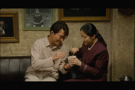 그래서 아버지와 아들이 함께 있는 시간은 대부분 고요하다. 그렇게 표현이 적은 정원도 가끔 잠든 아버지 방문을 열고 담배 한 개비를 꺼내오거나, 천둥 벼락이 치는 밤 문득 죽음이 두려울 때 아버지 방으로 들어와 눕는다. 아버지가 침을 삼키는 장면을 보고서야 관객은 아버지가 잠들어 있지 않음을 짐작할 수 있다.