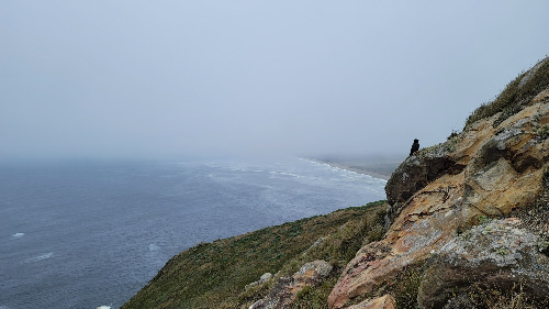 바위 절벽 위에서 느긋하게 쉬고 있는 독수리 한 마리가 보인다. 외로워 보인다기보다 늠름해 보인다. 다시 장기 비행을 떠나기 전 물멍을 하고 있는 것일까? 혹은 안개로 보이지 않는 방향을 정확히 조준하고 있는 것일까?