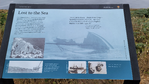 스페인 탐험가들은 이 지역을 Punta de los Reyes (Point of the Kings)라고 불렀는데, 그만큼 왕의 위세가 느껴지는 해안이라는 뜻이었으리라. '이곳에 표류한 불행한 선원에게 신의 가호가 있기를'이라는 인용문에서 바다에 수장된 수많은 이들을 짐작할 수 있다.