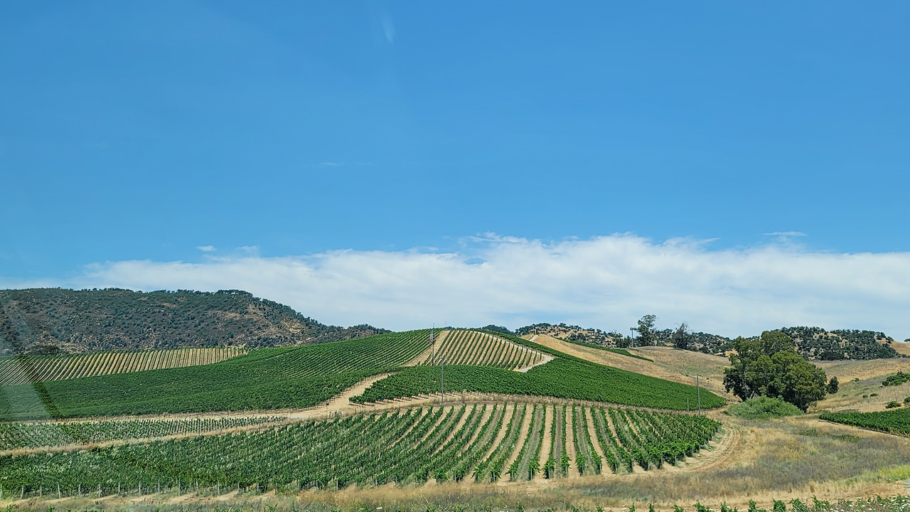 산라파엘을 지나 소노마 카운티(Sonoma County)로 들어섰다. 캘리포니아 와인 생산지 특유의 포도밭과 농장 풍경이 펼쳐지기 시작했다. 끝없는 포도밭, 아름다운 농장과 와이너리, 구릉과 능선, 초록과 노랑이 이루는 패턴, 나무가 더하는 점선면의 아름다움...