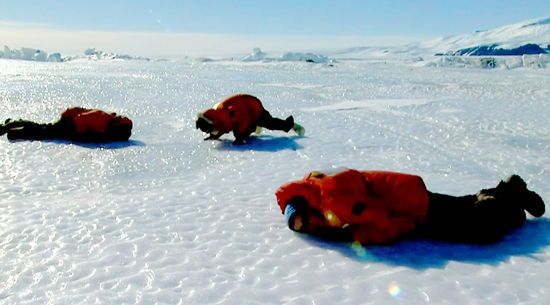 즐거워 보이는 남극의 하루 하루지만 사실 목숨을 건 사투이기도 하다. 각자 맡은 임무는 공통적으로 생명의 위협을 감수하는 일. 영하 2도의 얼음물 속으로 매일 잠수하는 세포학자는 밧줄을 사용하지 않는다. 나침반도 사용할 수 없다. 자기극이 가까워 바늘이 위아래만 가리키기 때문이다. 돌아온 구명을 찾지 못하면 얼음에 갇히기에 떠도는 우주 비행사와 같은 운명이다.