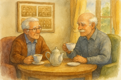 어느새 노인이 된 두 친구는 찻잔을 앞에 두고 이야기를 나누었다.