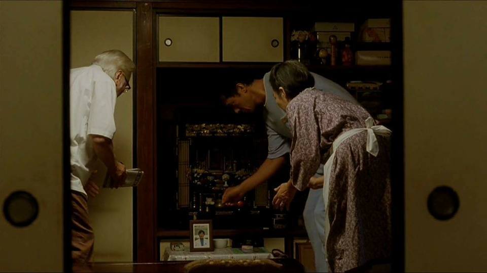 청년이 떠나고 여인들이 음식과 설거지에 분주한 동안, 말끔히 치워진 상 앞에 남은 아버지와 형의 대역 둘째 아들은 시선과 대화 모두 어긋나고 미끄러진다. 아들은 자기가 하는 모든 일은 어차피 아버지에게는 실패와 동의어임을 알고 있다. 지금 하필 실직 중이다. 아내와는 차라리 부모님을 모시고 살며 유산을 받는 것이 어떤가 고민하고 있다. 그래서 꽤 오래 가족이 오가는 밥상을 담고 있던 카메라는 아버지가 ‘그래, 밥은 먹고 사냐’ 물을 때 불쑥 아버지의 단독 샷으로 바뀔 때 아들은 '애 딸린 여자 하나는 먹여 살릴 수 있다'라고 퉁명스레 대꾸하고, 그의 등 뒤에는 죽어서도 잘난 형 영정이 웃고 있다.