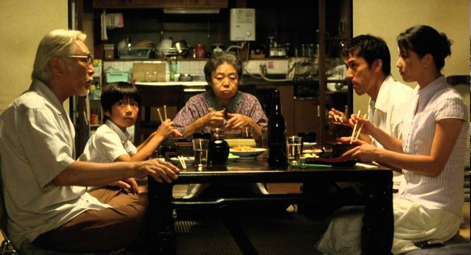 앞에서 이 영화가 부드러운 명주천을 만지다 베이는 느낌이라 한 것은, 영화가 진행되며 이 가족이라는 덩어리가 서서히 개인이라는 딱딱한 조각으로 쪼개지기 시작하는 후반의 이야기에 있다. 마치 위의 것으로는 아래 지층을 알 수 없는 소복한 덮밥처럼 말이다. 내 몫의 밥의 바닥을 보아야 일어날 수 있는 좁은 밥상......끼어 앉은 가족은 벗어날 수 없는 정적 속에 덮밥을 먹는다. 귀한 손님을 위하여 종일 음식을 준비한 어머니가 처음 수십 년 숨겨 두었던 이야기를 꺼낼 때부터 정적은 더 무겁다.