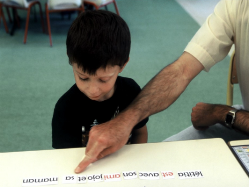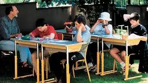 선생님은 서로 다른 나이와 눈 높이의 아이들을 세 개의 테이블에 둘러 앉히고 수업을 한다. 진지하게 알파벳을 배우는 유치원 아이들은 칭찬을 받고 싶어 앞 다투어 선생님을 불러댄다. 그러나 받아쓰기 실력이 좋은 고학년 학생들의 공부를 선생님이 돌보는 동안에는, 콧구멍에 연필을 꼽은 채 선배들의 모습을 숨죽여 바라보기도 한다,