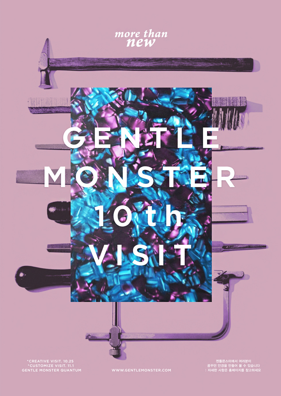 - 2014년 10월 25일 홍대 쇼룸에서 개최되는 젠틀몬스터의 <VISIT> Project. <VISIT>은 소비자가 직접 안경을 디자인하고 제작하는 프로젝트다. 벌써 10번 째 VISIT을 맞이하여 more than new라는 슬로건 하에 design과 story 두 부문에서 참가 신청을 받는다