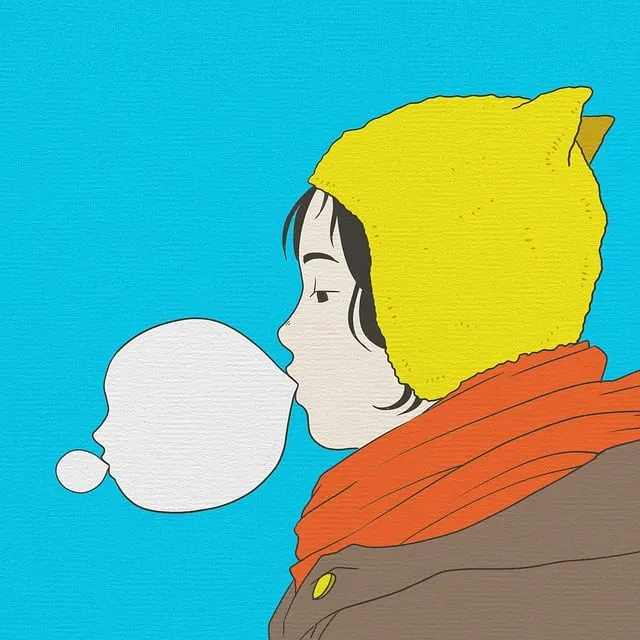“엄마, 내가 껌으로 풍선 불어줄게! 봐봐!”