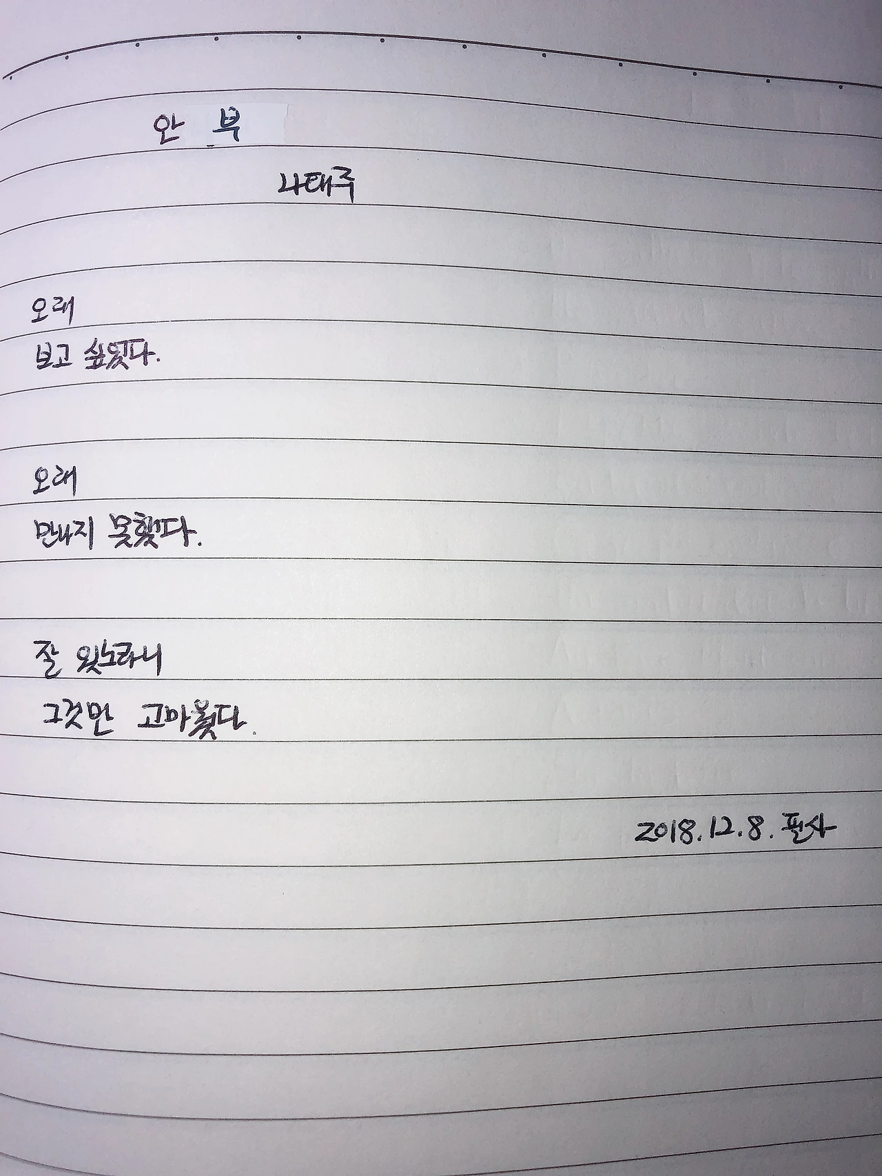 오래 보고 싶었다 오래 만나지 못했다 잘 있노라니 그것만 고마웠다.