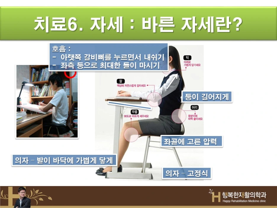 질문 7. 청소년뿐만 아니라 성인에 이르러서도 바르지 못한 자세 때문에 척추측만증에 걸릴 수 있는데요. 평소에 어떻게 예방하는 것이 좋을까요?