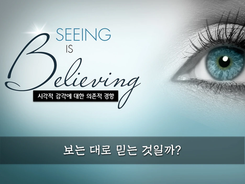 흔히 "눈으로 보는 것은 곧 사실이다." 라는 의미로 "Seeing is Believing" 이라고 얘기하지만 부분적으로만 맞습니다. 어쩌면 사피엔스의 여러 감각 중에서 시각적 감각에 크게 의존하는 경향성을 나타낸다고 보는 편이 더 맞을 것입니다.