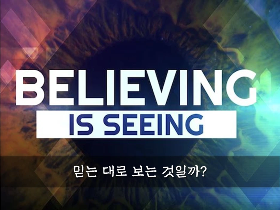 오히려 “Believing is Seeing”이 더 사실에 가까울 때가 많습니다. 믿는 것만 보는 겁니다. 믿는 것이 아니면 눈에 잘 들어오지 않는 경우도 매우 흔합니다. 내가 믿고 있는 관념과 경험에 의해서 감각적인 정보들이 모두 필터링되고 있습니다.
