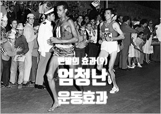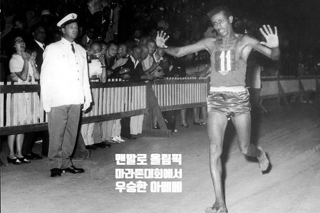 1960년 로마 올림픽에서 이런 상식적인 이야기를 뒤집는 사건이 벌어집니다. 바짝 마른 체격의 아프리카 선수가 올림픽 마라톤 대회에서 맨발로 도로를 사뿐사뿐 가볍게 달리는 장면은 충격적으로 보일 만큼 특별했습니다. 얼마 전까지만 해도 이탈리아의 지배를 받던 에티오피아 출신 무명의 선수가 수많은 관중과 기자들에게 강한 인상을 남기며 올림픽 메인 스타디움으로 들어섭니다.