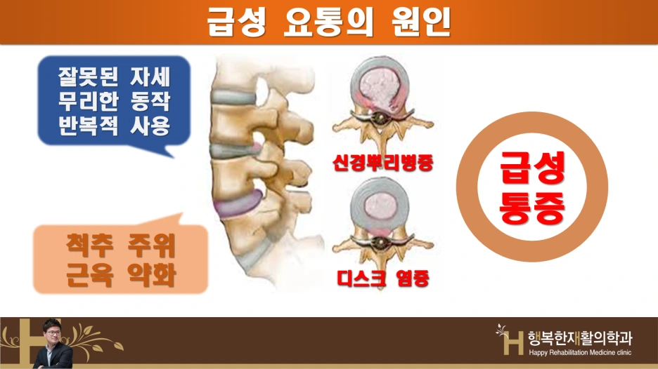꼼짝도 하기 힘든 급성요통이나 허리에서 시작하여 다리 쪽으로 뻗어나가는 통증은 도대체 왜 생기는 걸까요?