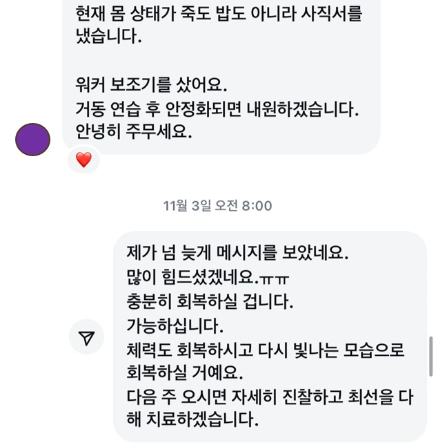 체력도 회복하시고 다시 빛나는 모습으로 회복하실 거예요.