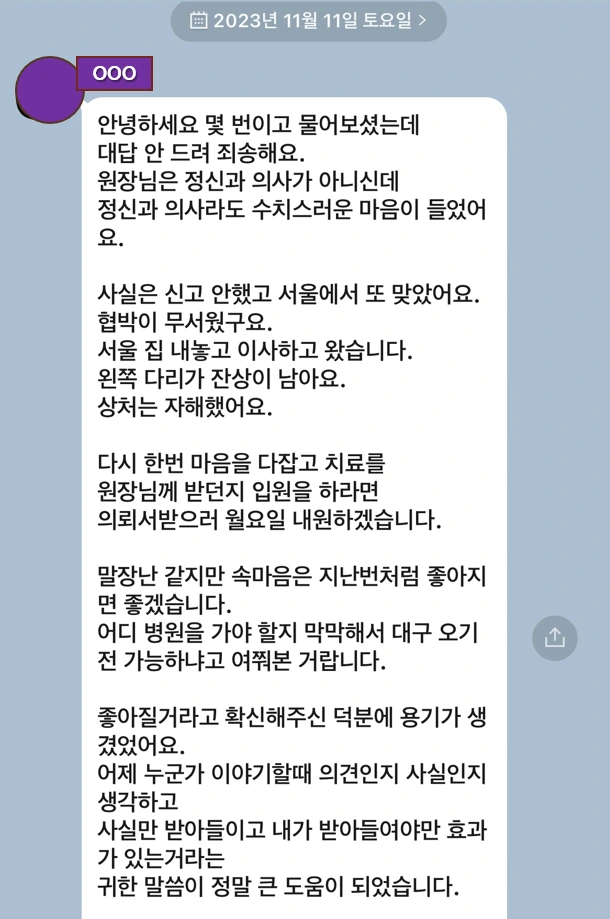 원장님 얼굴 보고 말씀드릴 용기가 없었고 눈물이 주체할 수 없을 것 같아 또 이렇게 구구절절 씁니다.