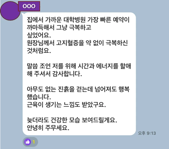 좋아질거라고 확신해주신 덕분에 용기가 생겼었어요.