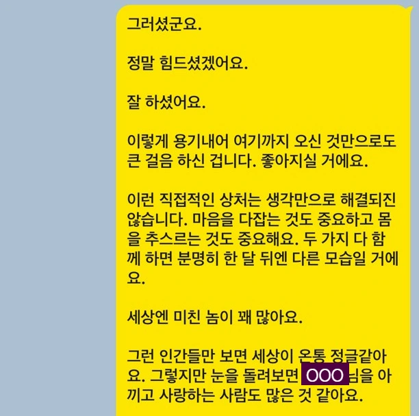 이렇게 용기내어 여기까지 오신 것만으로도 큰 걸음 하신 겁니다. 좋아지실 거에요.