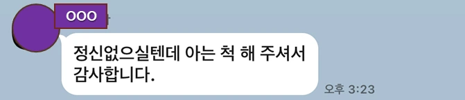 OOO 님에게서 메시지가 왔다. 강의가 모두 끝난 뒤에야 확인을 했다.