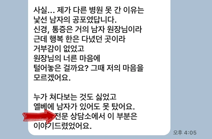 사실 제가 다른 병원 못 간 이유는 낯선 남자의 공포였답니다.