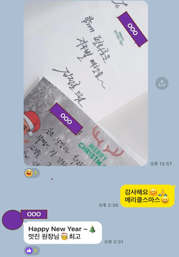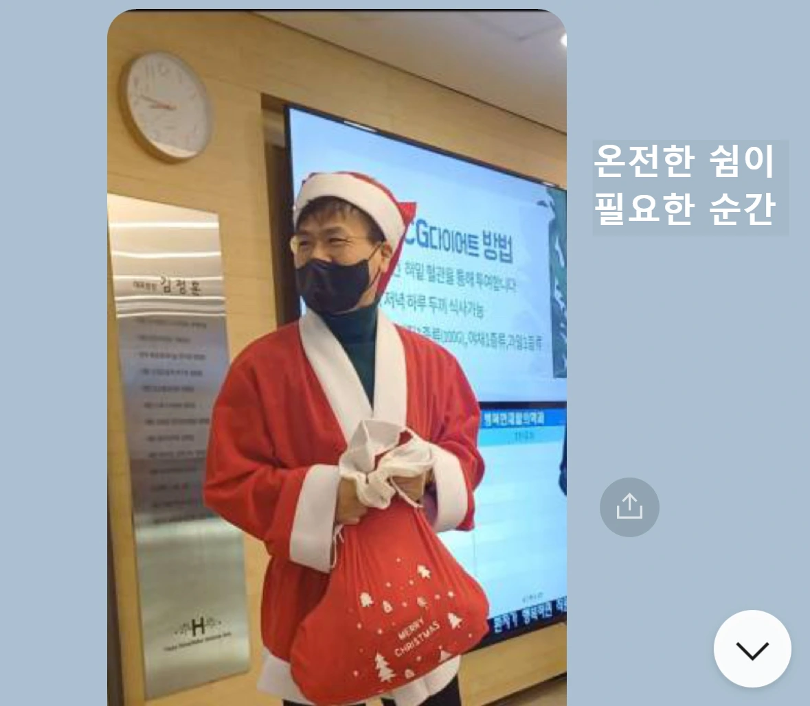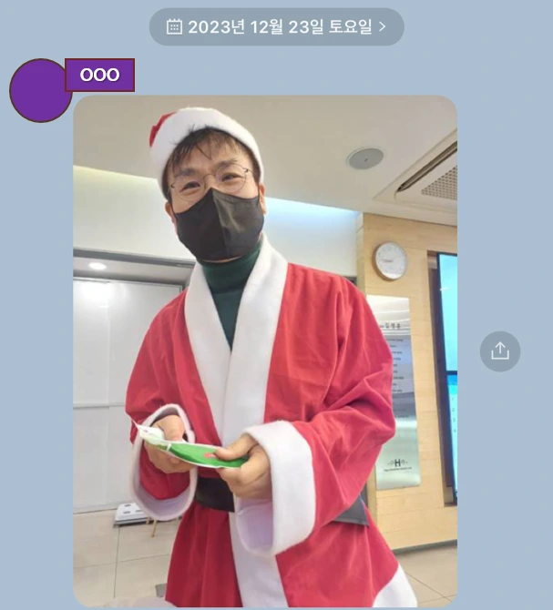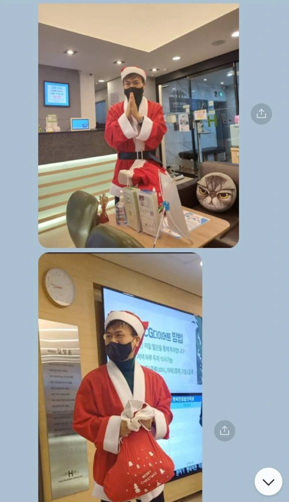 환자분이 크리스마스 전날에 내가 다른 분들에게 선물을 나눠주는 장면을 찍어서 보내주셨다.
