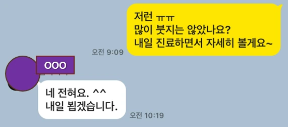 내일 OFF이시죠? 목요일 내원하겠습니다.