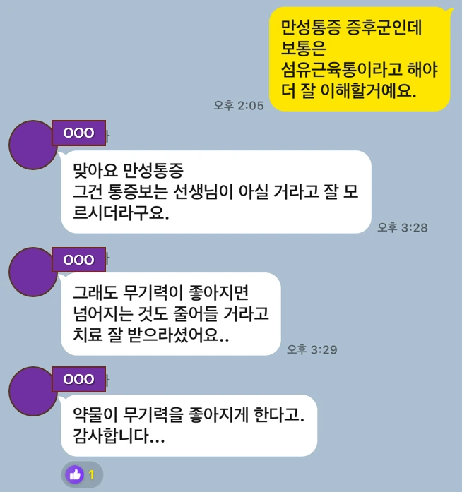 보통은 섬유근육통이라고 해야 더 잘 이해할 거예요.
