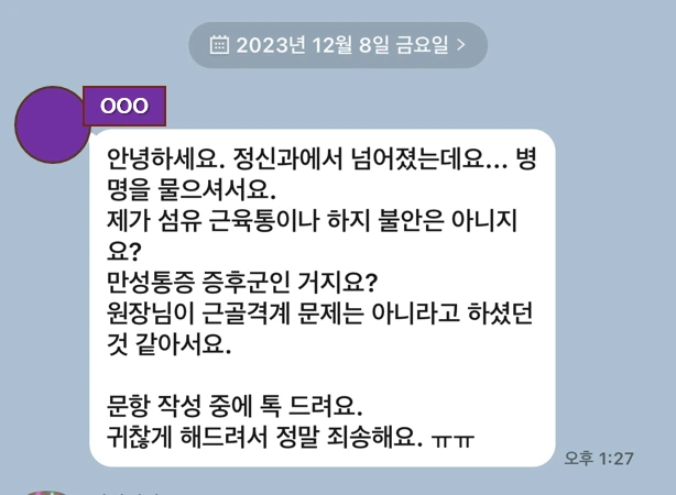 안녕하세요. 정신과에서 넘어졌는데요... 병명을 물으셔서요.