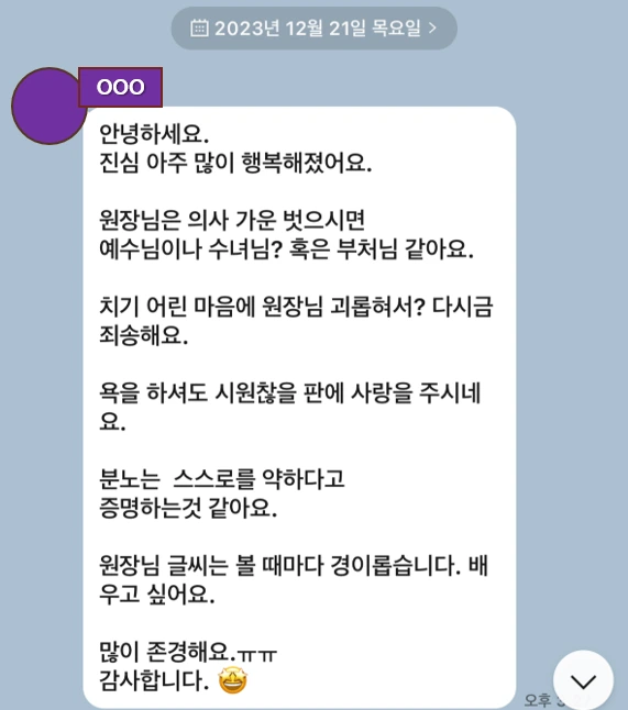 원장님은 의사 가운 벗으시면 예수님이나 수녀님? 혹은 부처님 같아요.