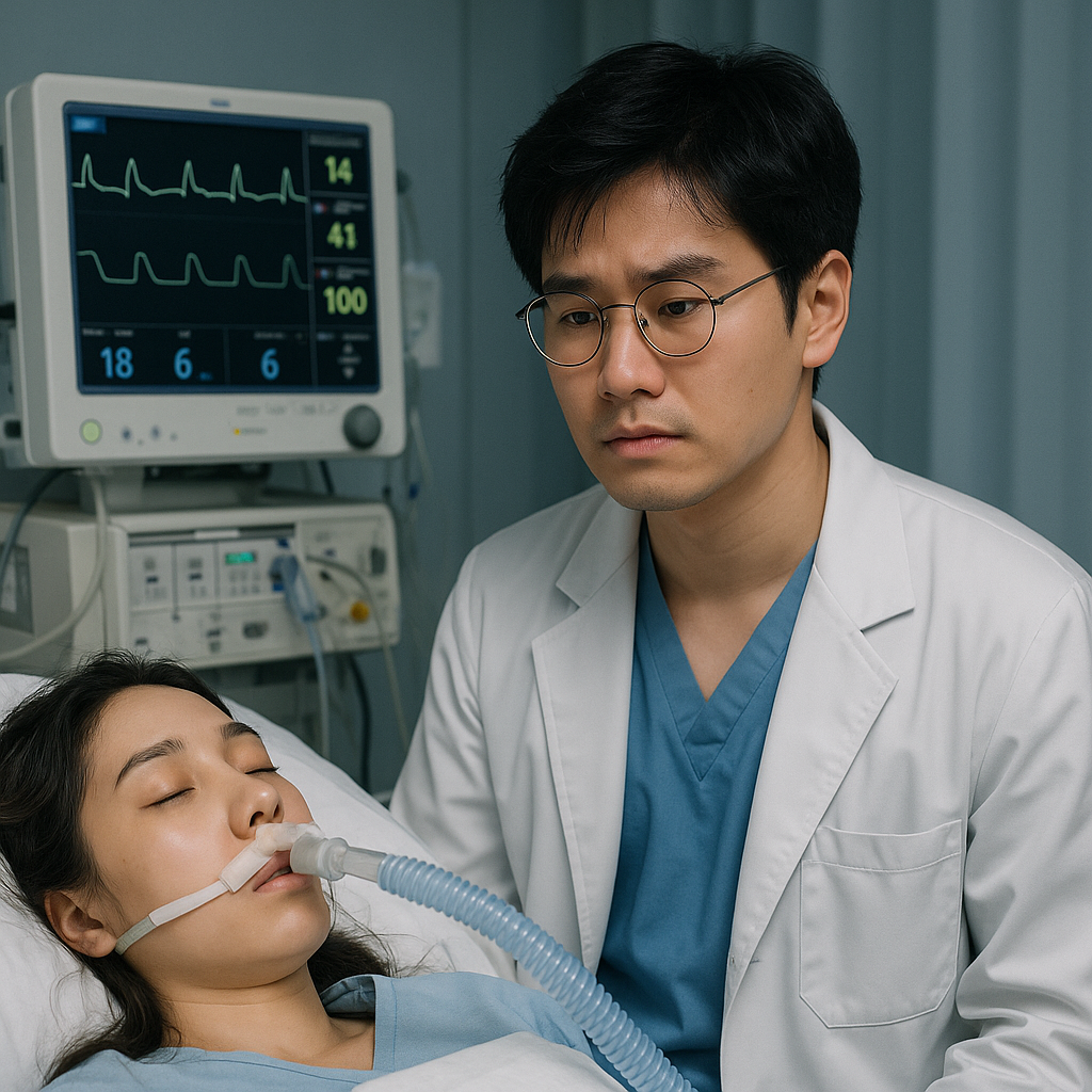 "선생님, OOO환자가 aspixia로 인공호흡 중이예요. 빨리 오세요!"