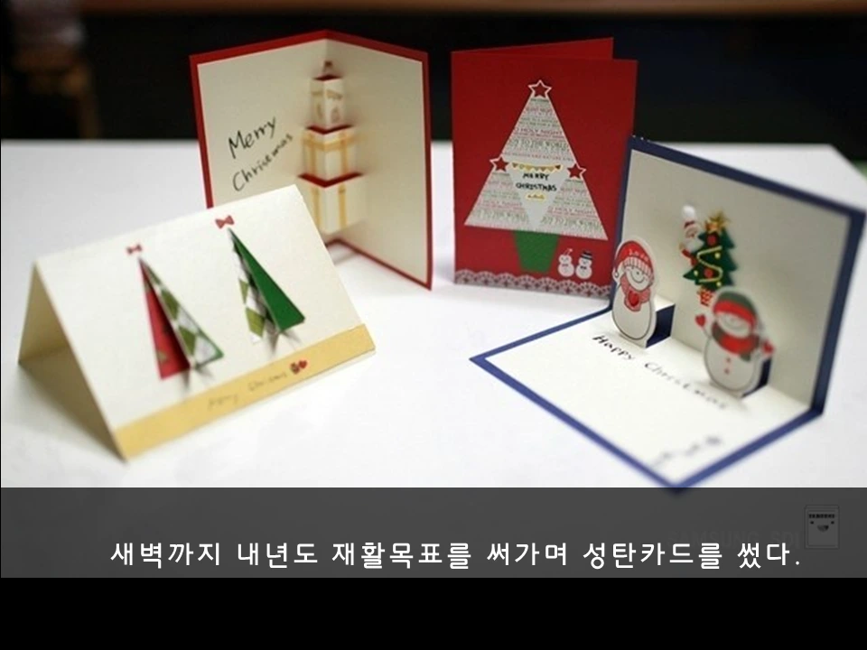 늦은 밤 카드를 가지고 숙소로 들어왔다. 이미 성탄절 새벽이 된 것이다. 약 세 시간 정도에 걸쳐서 환자들 모두에게 카드를 썼다. 성탄인사와 새해 재활치료 목표를 함께 적어 넣었다. 그 날 밤에는 신기하게도 병동에서 콜이 한 번 도 없었다.