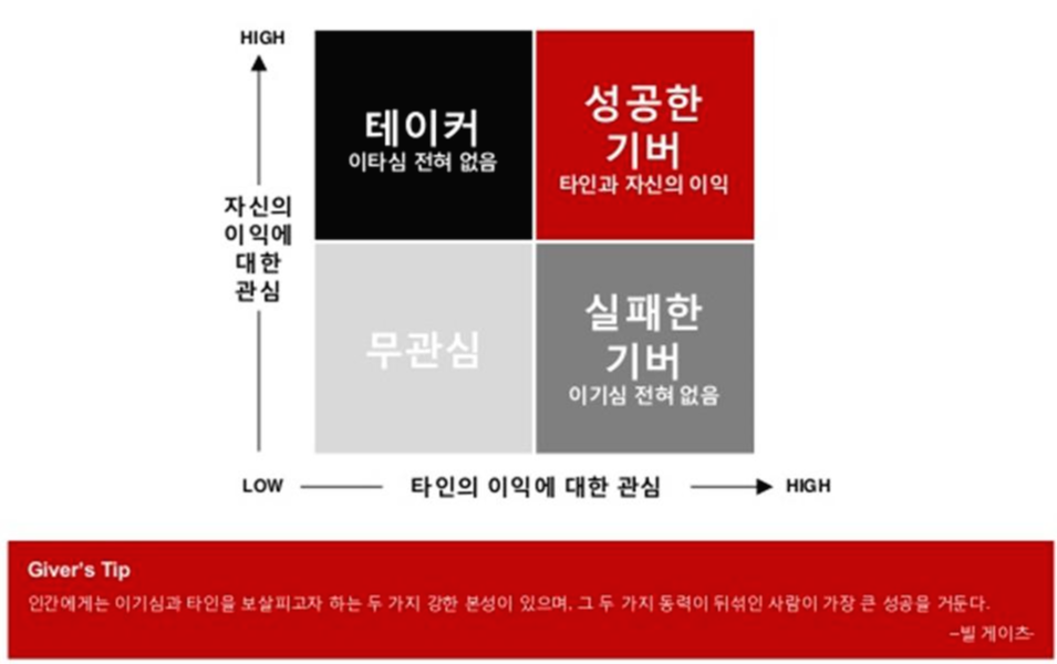 우측 끝에 있는 극단적 이타주의자들은 흥부 같은 기버 giver가 되겠지?