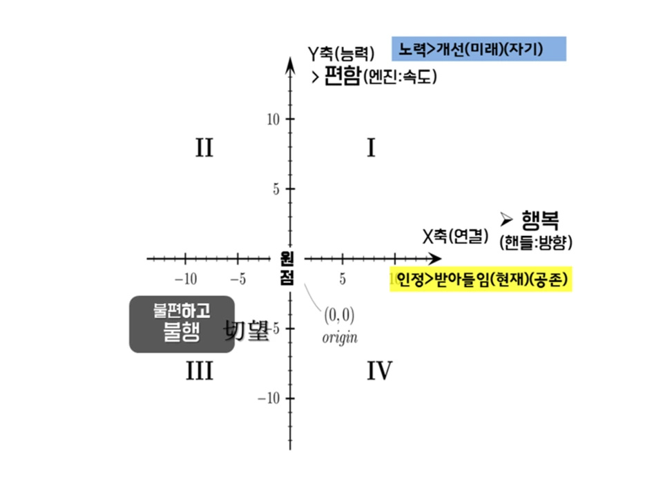 자본주의 사회의 속성도 모르고 자신이 진정으로 원하는 것이 무엇인지도 모른다면 3사분면에서 수시로 찾아오는 절망적인 현실과 아무리 바라 봐도 희망이 없는 미래를 보며 고개를 떨구게 될 거야.