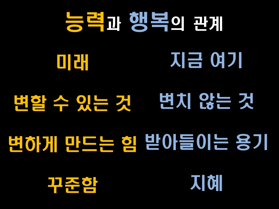 다른 이들이 볼 때 좀 다를지는 모르지만 아빠는 1 사분면에 있는 것 같아. 아빠의 경우에는 능력이 내게 행복을 준 것이 아니라 행복의 결과로 내게 능력이 부산물처럼 주어진 셈이야