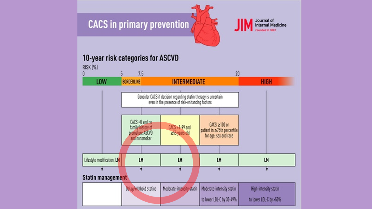 자세히 보시면 심장혈관 석회화 지수가 1~99이고 55세 이상일 때 스타틴 치료를 시작하고 100이 넘으면 좀 더 센 스타틴을 투여하여 LDL 콜레스테롤을 원래보다 30~49%까지 낮추도록 권고하고 있습니다.