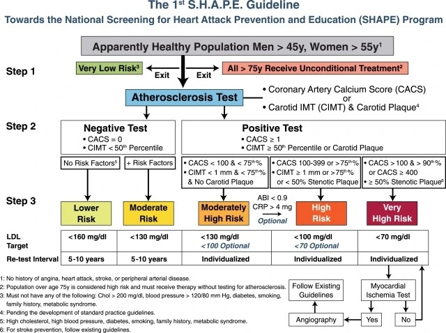 이렇게 심장혈관의 문제를 확인하고 그에 따라서 LDL 콜레스테롤을 130 혹은 100, 심한 경우는 70 이하로 조절하라고 권고하고 있습니다. 현대의학에서 심장혈관의 문제는 대체로 LDL 콜레스테롤을 낮추는 것으로 예방하는 것이 표준화된 치료로 자리 잡고 있습니다.