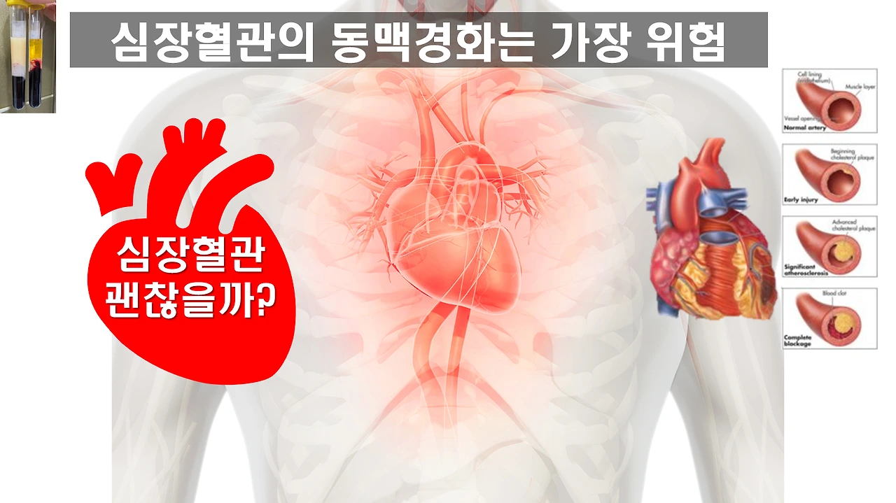고지혈증이 지속되고 몸에 염증이 쌓이면 심장혈관(관상동맥)에 찌꺼기가 쌓이고 혈관이 딱딱하게 변하는 동맥경화가 진행됩니다.