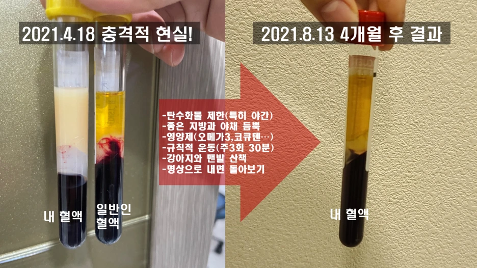 기름 덩어리였던 제 혈액이 많이 맑아졌죠?